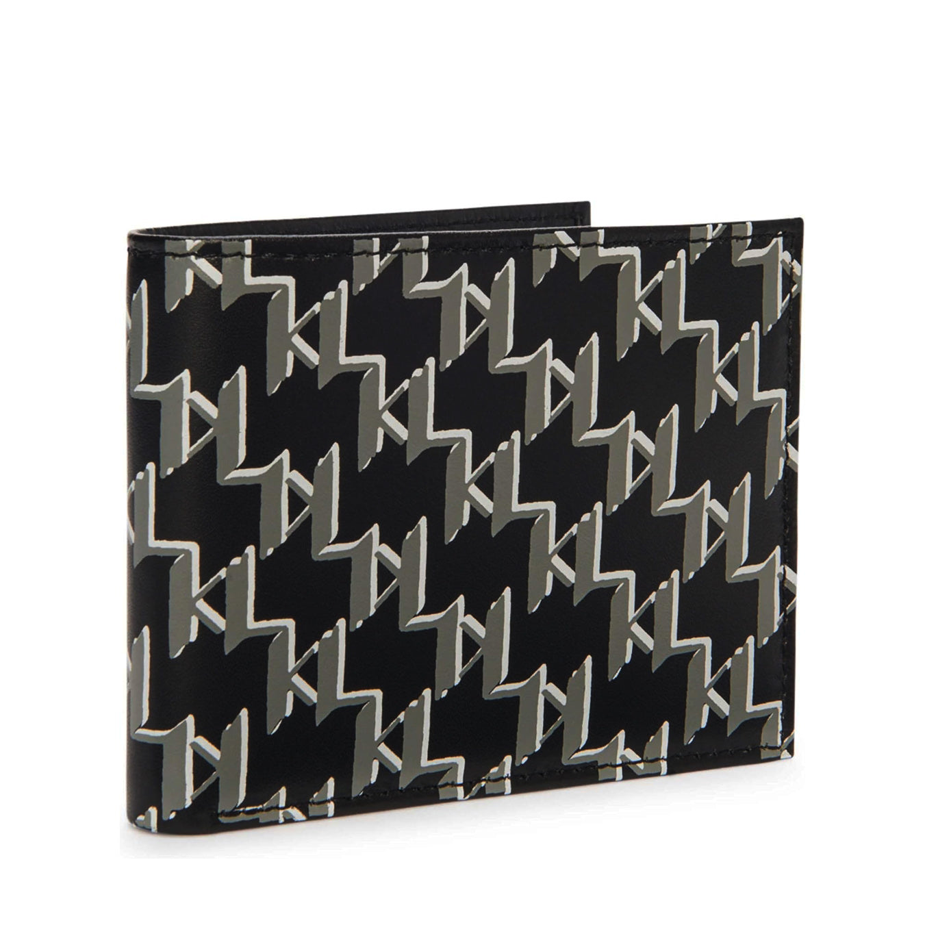 Step up your everyday carry with this eye-catching Karl Lagerfeld KL Monogram Wallet. This bi-fold features a distinctive all-over monogram print in shades of black, white, and grey, offering a modern, graphic take on luxury.